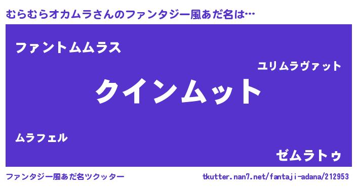 | 女子向けラノベタイトル風あだ名 | 『むらむらオカムラ夫妻のなれそめ』 |