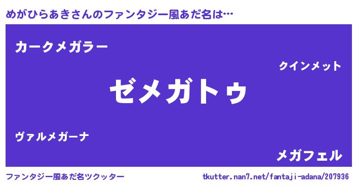 | 欧米人風あだ名 | 『アンジェラ・めがひらあき』 |
