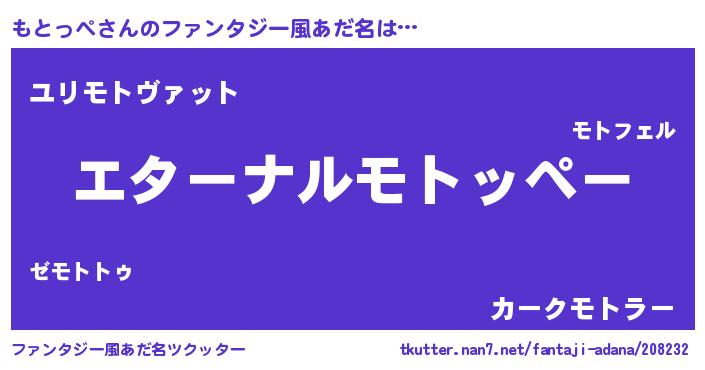 | 意味不明あだ名 | 『もとっぺフォーエバー』『自称もとっぺ』 |
