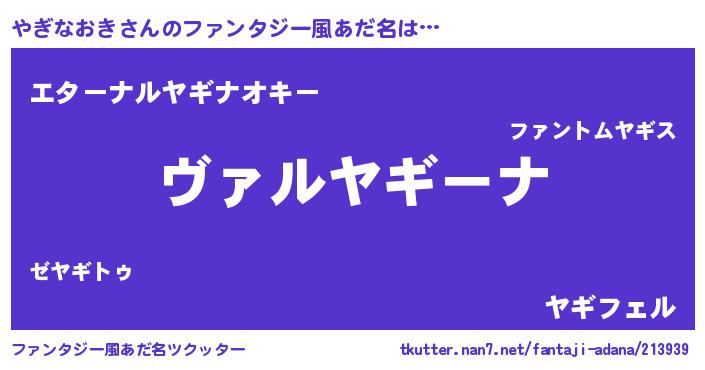 | 女子向けラノベタイトル風あだ名 | 『悪役やぎなおきに転生したようですが、知った事ではありません』 |