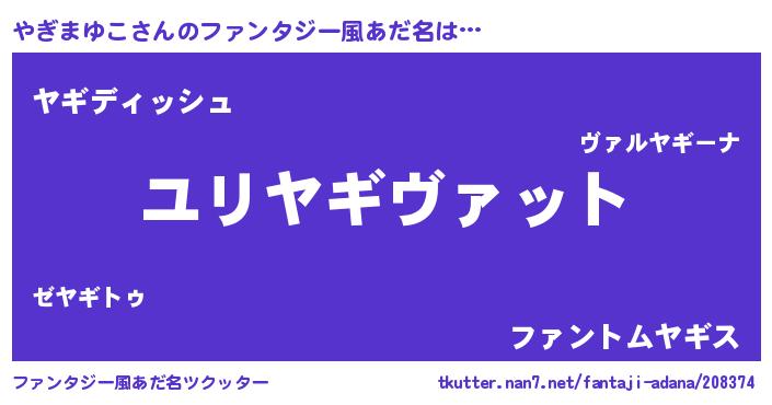 | ヘコむあだ名 | 『やぎまゆこ(苦笑)』『やぎぷりん』 |