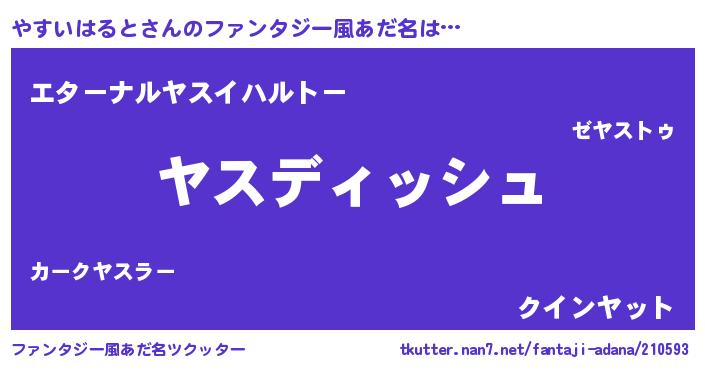 | 男性向けラノベタイトル風あだ名 | 『誰もが恐れるあのやすいはるとが、ぼくの専属メイドになるようです。』 |