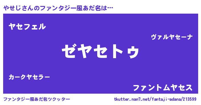 | ヒーロー風カッコイイあだ名 | 『超時空戦士ヤセジ』『スーパーヤセジ』 |