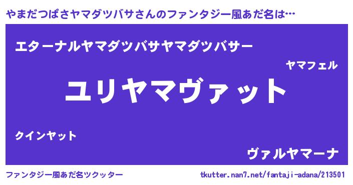 | 男性向けラノベタイトル風あだ名 | 『やまだつばさヤマダツバサに滅ぼされるだけの簡単なお仕事です』 |