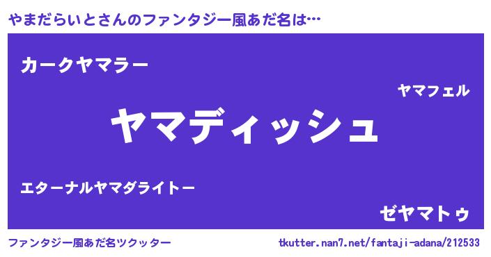 | 欧米人風あだ名 | 『ダルビッシュやまだらいと』 |