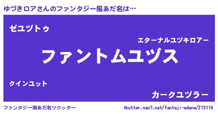 | ポケモン風あだ名 | 『ユヅゴンZ』『ヒユヅキロア』 |
