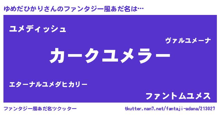 | ヘコむあだ名 | 『ゆめだひかり(笑)』『ゆめお』 |
