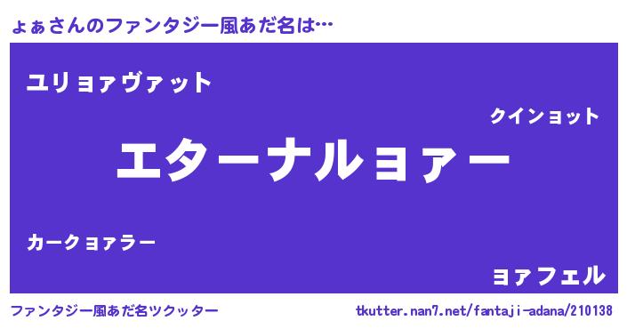 | 自動車の名前っぽいあだ名 | 『ョクア』『ョールスァイス』『ョンR』 |