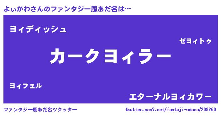| 意味不明あだ名 | 『永久保存よぃかわ』『自称よぃかわ』 |