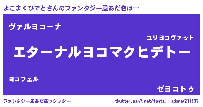 | 女子向けラノベタイトル風あだ名 | 『よこまくひでとの雑貨屋さん』 |