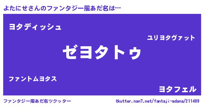 | 男性向けラノベタイトル風あだ名 | 『Re:よたにせから始める異世界生活』 |