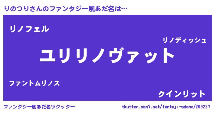 | 男性向けラノベタイトル風あだ名 | 『リノツリスレイヤー』 |