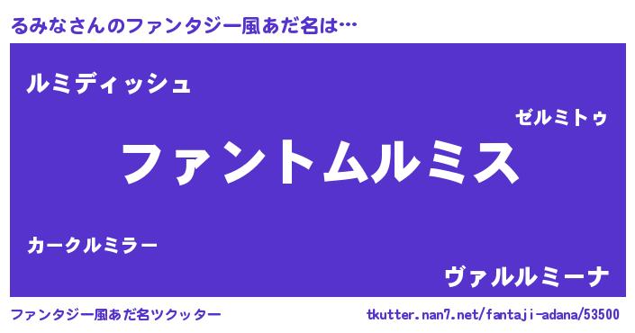 | 男性向けラノベタイトル風あだ名 | 『るみなに滅ぼされるだけの簡単なお仕事です』 |