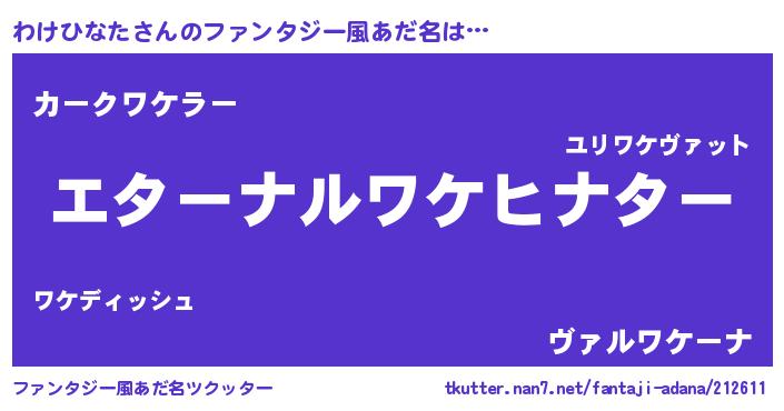 | 意味不明あだ名 | 『わけひなたフォーエバー』 |