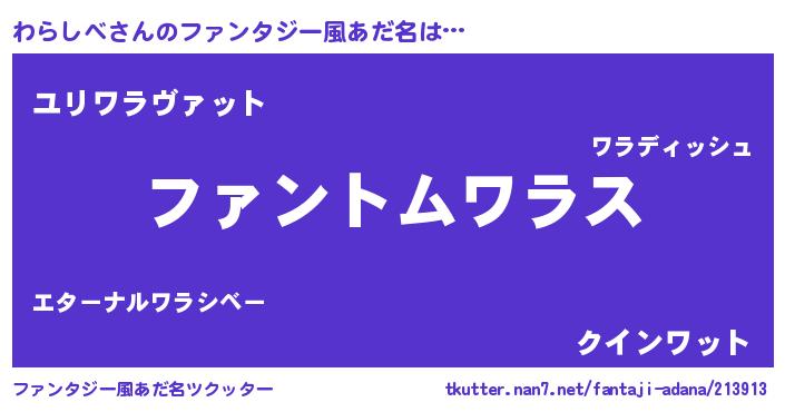 | 欧米人風あだ名 | 『ウサインわらしべ』『ダニエルわらしべ』 |