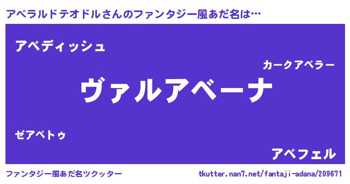 | 男性向けラノベタイトル風あだ名 | 『この素晴らしい世界にアベラルドテオドルを!』 |