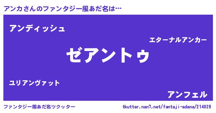 | 男性向けラノベタイトル風あだ名 | 『Re:アンカから始める異世界生活』 |