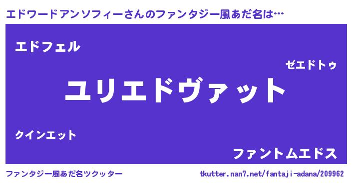 | 欧米人風あだ名 | 『トリンドルエドワードアンソフィー』 |