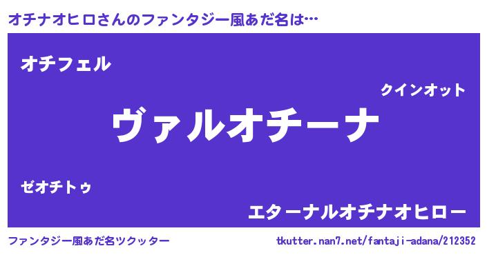 | 男性向けラノベタイトル風あだ名 | 『魔弾の王とオチナオヒロ』 |