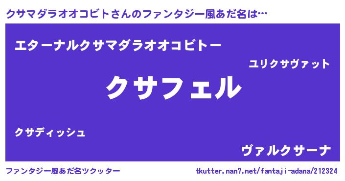 | 2回繰り返すあだ名 | 『クサクサ』『ククササ』『ざーざー』 |