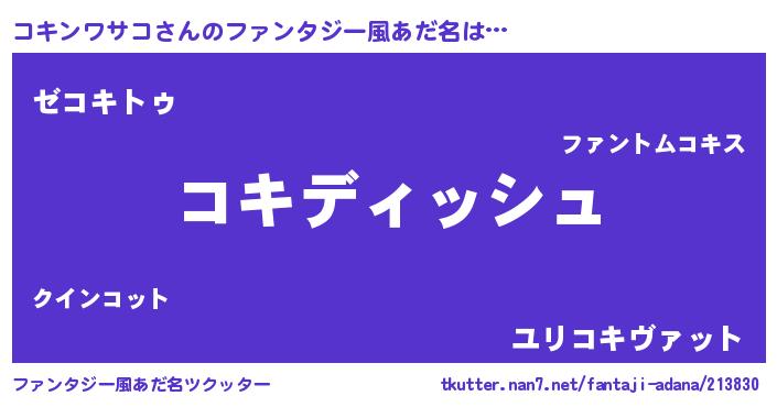 | ヘコむあだ名 | 『コキンワサコ(笑)』『コキ太郎』 |