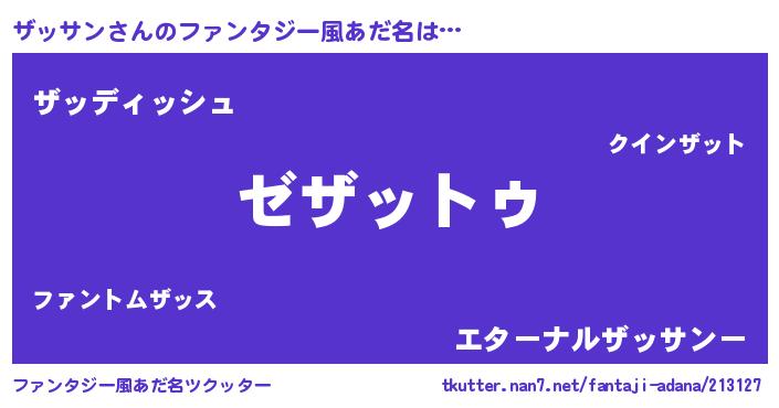 | 男性向けラノベタイトル風あだ名 | 『ザッサンに滅ぼされるだけの簡単なお仕事です』 |