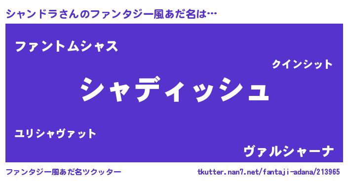 | 男性向けラノベタイトル風あだ名 | 『シャンドラという概念が存在しない退屈な世界 』 |