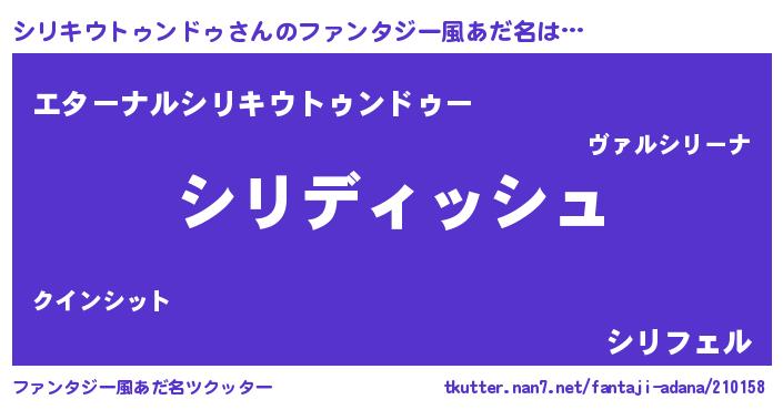 | 男性向けラノベタイトル風あだ名 | 『シリキウトゥンドゥという概念が存在しない退屈な世界 』 |