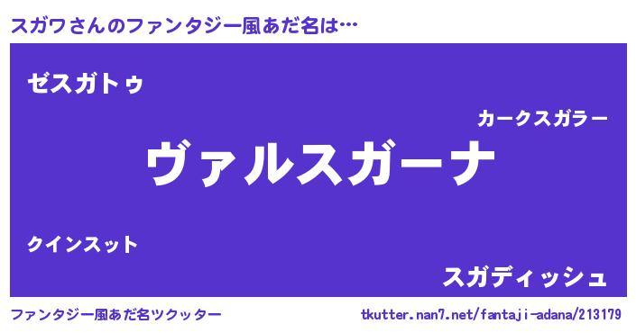| 女子向けラノベタイトル風あだ名 | 『乙女ゲームの破滅フラグしかない悪役スガワに転生してしまった…』 |