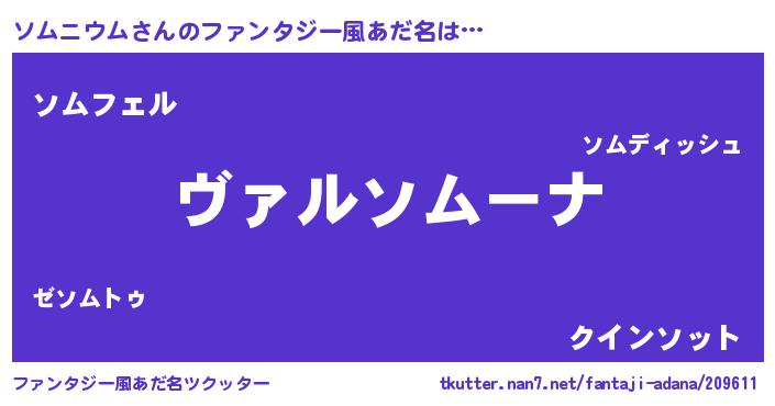 | ヘコむあだ名 | 『ソムにー』『ソムニウム(笑)』 |
