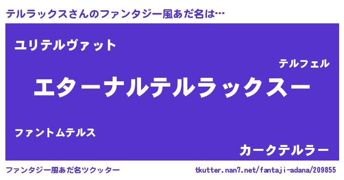 | 男性向けラノベタイトル風あだ名 | 『やはりテルラックスの青春ラブコメはまちがっている 』 |