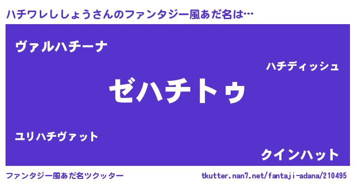 | ヒーロー風カッコイイあだ名 | 『最強戦士ハチワレシショウ』 |