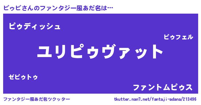 | 男性向けラノベタイトル風あだ名 | 『ピゥピスレイヤー』『ピゥピの憂鬱』 |