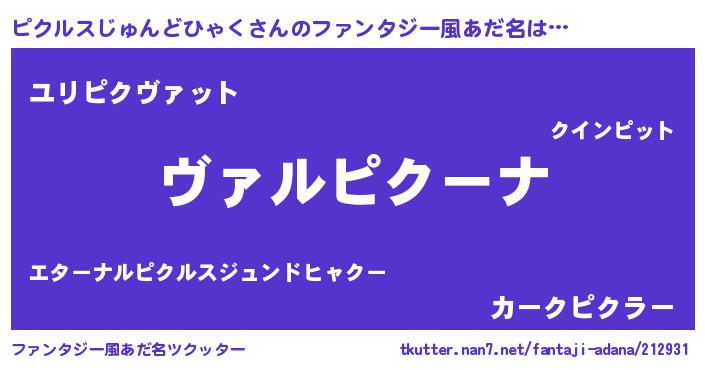 | 男性向けラノベタイトル風あだ名 | 『この素晴らしい世界にピクルスじゅんどひゃくを!』 |