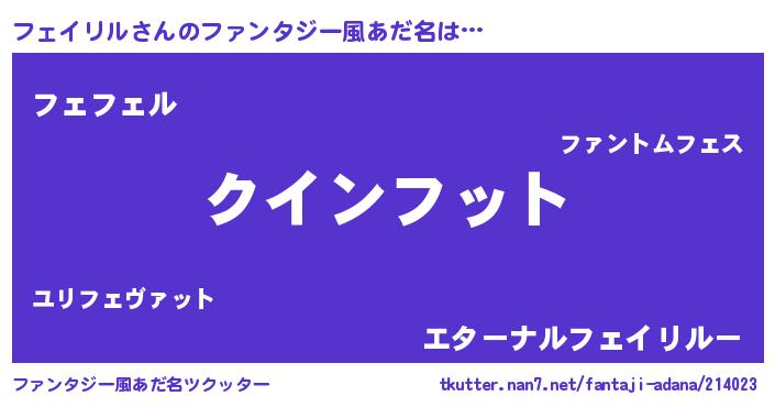 | 女子向けラノベタイトル風あだ名 | 『フェイリル恋絵巻』 |