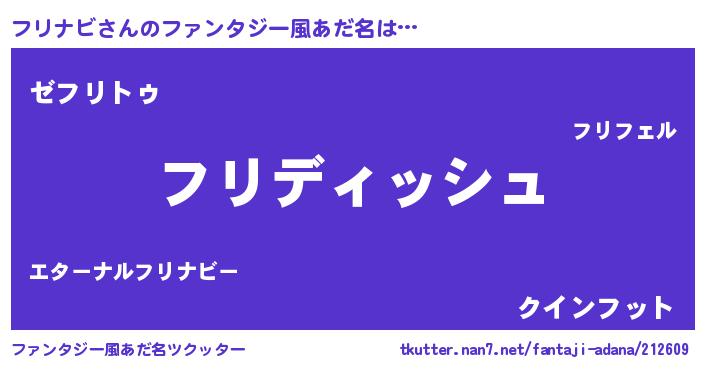 | 意味不明あだ名 | 『永久保存フリナビ』『自称フリナビ』 |