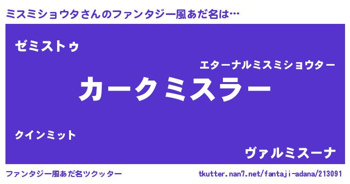 | 意味不明あだ名 | 『自称ミスミショウタ』 |