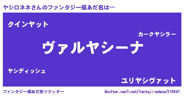 | 男性向けラノベタイトル風あだ名 | 『この素晴らしい世界にヤシロネネを!』 |