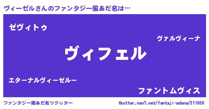 | 女子向けラノベタイトル風あだ名 | 『(仮)ヴィーゼルのやんごとなき事情』 |