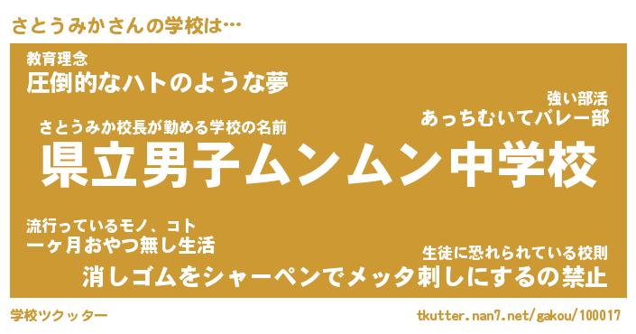 | 男性向けラノベタイトル風あだ名 | 『サトウミカアートオンライン』 |