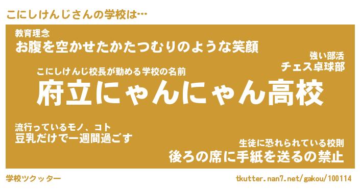 | 女子向けラノベタイトル風あだ名 | 『(仮)こにしけんじのやんごとなき事情』 |