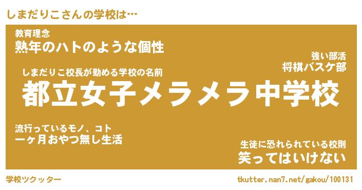 | ヘコむあだ名 | 『しまにー』『つくし』『しまを』 |