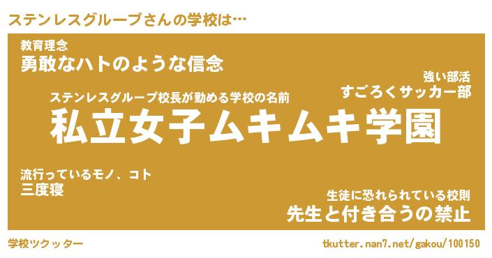 | 先生 | ステンレスグループ先生が勤める学校名『府立猫耳小学校』 |