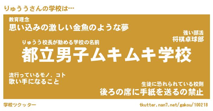| ヒーロー風カッコイイあだ名 | 『スーパーリュウウ』『天弓騎士リュ』 |