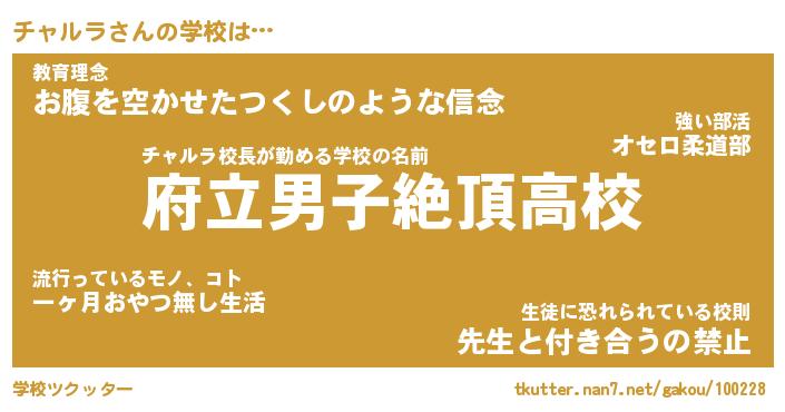 | 女子向けラノベタイトル風あだ名 | 『チャルラ姫と円卓の騎士』 |