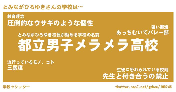 | ヘコむあだ名 | 『とみにー』『牛乳』『とみっちょ』 |