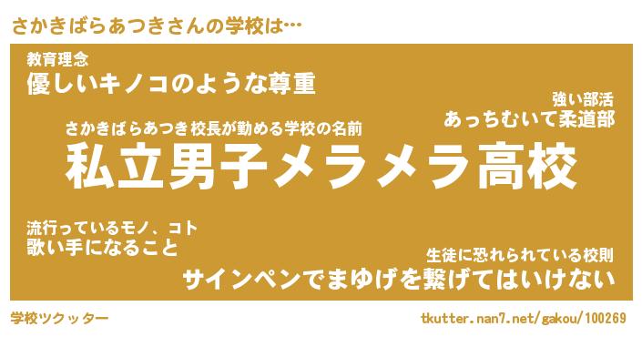 | 男性向けラノベタイトル風あだ名 | 『さかきばらあつきの憂鬱』 |