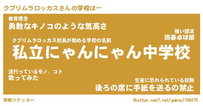 | 男性向けラノベタイトル風あだ名 | 『クプリムラロッカスの憂鬱』 |