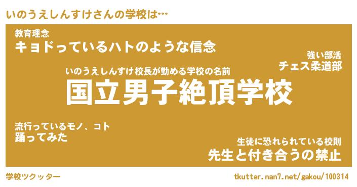 | 女子向けラノベタイトル風あだ名 | 『いのうえしんすけ姫と円卓の騎士』 |