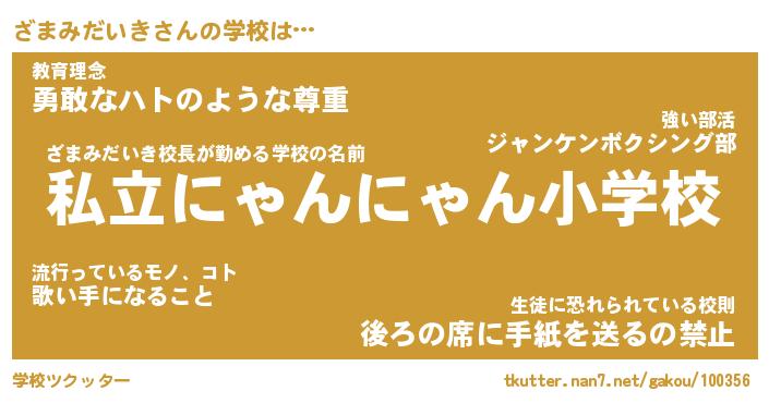 | 男性向けラノベタイトル風あだ名 | 『ざまみだいきの憂鬱』 |